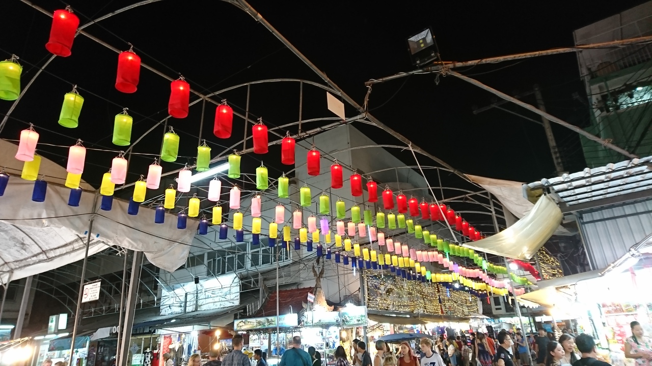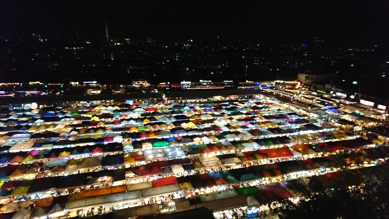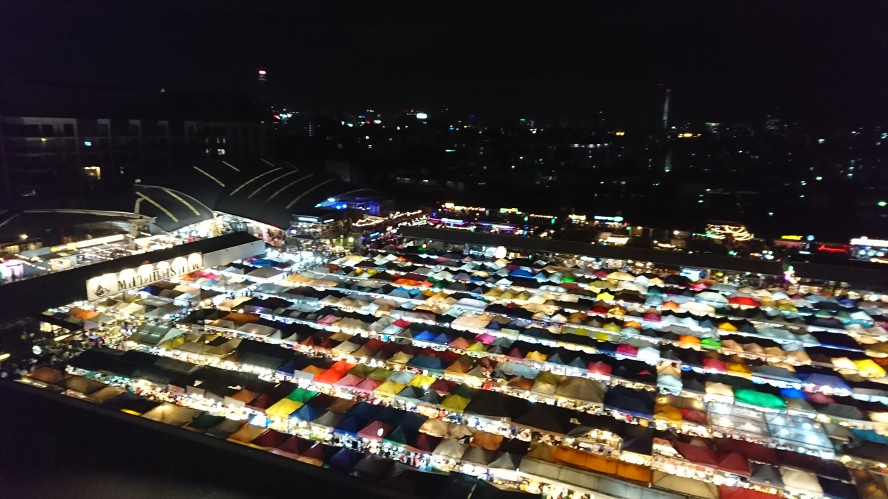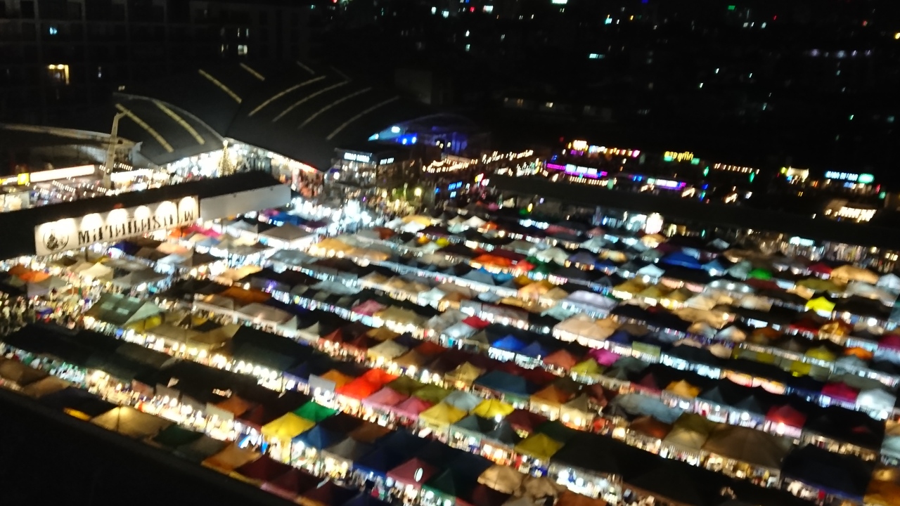 近くのビルの駐車場から見ると色とりどりのテントの屋根がインスタ映えする市場として最近話題だと思います。場所はタイ文化センター駅から近くてアクセスはいいと思います。最初駐車場の行き方が分からないのですが、帰りに通るとビルの中の大戸やさんを曲がって行くとわかりやすかったかもしれません。市場自体はすごく混んでいて人混みもすごいので時間がなければパスしてもいいかもしれません。