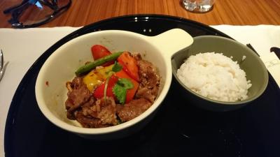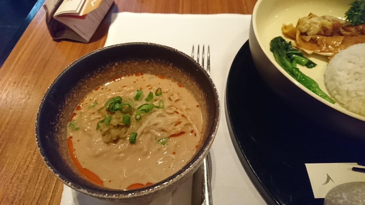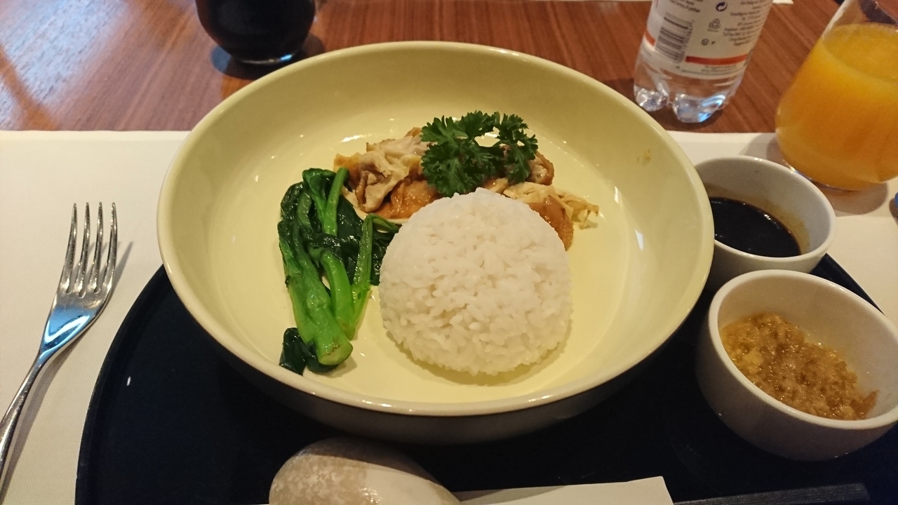 そんなに多くのファーストクラスラウンジに行っているわけではありませんが、行った事のあるファーストクラスのラウンジでは一番立派なファーストクラスラウンジです。食事は一番奥のダイニングでアラカルトでオーダーするシステムで今回はチキンライスとサーモン、ポークと担々麺をオーダーしました。チキンライスはご飯に味がないタイプで少し残念でした。