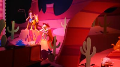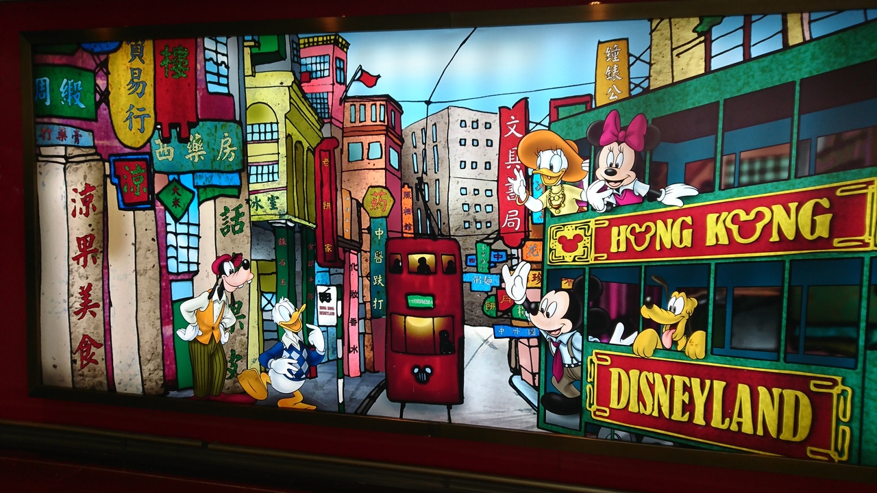 日曜日でしたが10分も待たないで乗れました。イッツア スモールワールドのは最近日本でもディズニーキャラが隠れキャラにいるようですが、香港にもいます。室内で涼しいですし、お馴染みの音楽に癒されるのんびりできてオススメのアトラクションです。