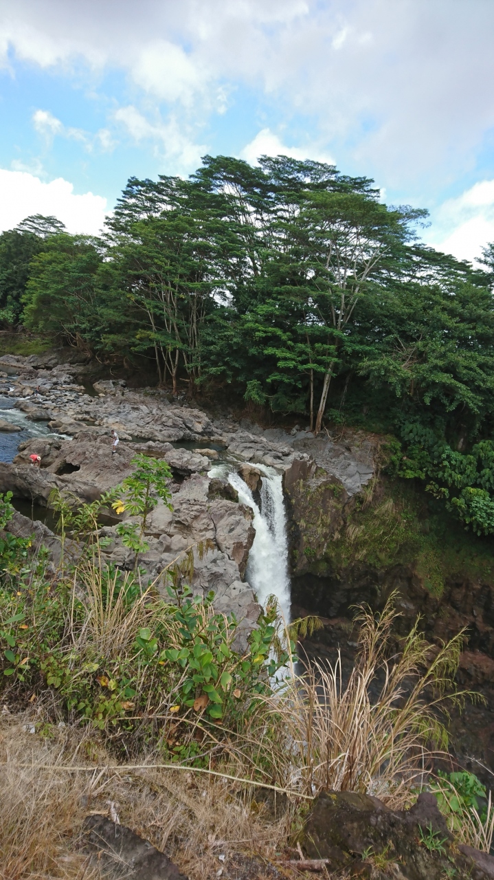 ヒロの近くにあり駐車場からも近いのでヒロで時間があれば午前中に行った方がいいらしいです。ガイドブックには9時から11時、サンセットと星空ツアーのガイドさんは8時から10時がいいと言っていたのでどちらにしても午前中がいいようです。虹が出ていなくても後ろが洞窟になっていて綺麗な滝でした。