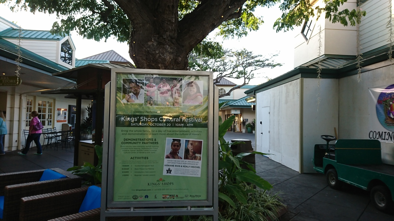 ワイコロア地区のガソリンスタンドがある場所なので、一回は行くのですが、クインズはスーパーがあり、フードコートもあるので人もいるのですが、キングスは高級なレストランが多いせいか人も少なく閉まっている店もあります。アイランドビンテージコーヒーがカミングスーンと書いていました。クレージーシャツで買い物をして夕日を見て帰ってきました。