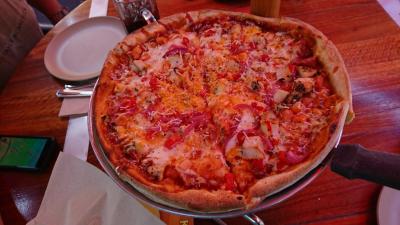 ピザを3人でMサイズを2種類頼んだらどちらも美味しかったのですが、結構大きくて6分の1を2切れお持ち帰りにしました、飲んだジンジャエールが生姜が効いて美味しかったです。- 旅行時期