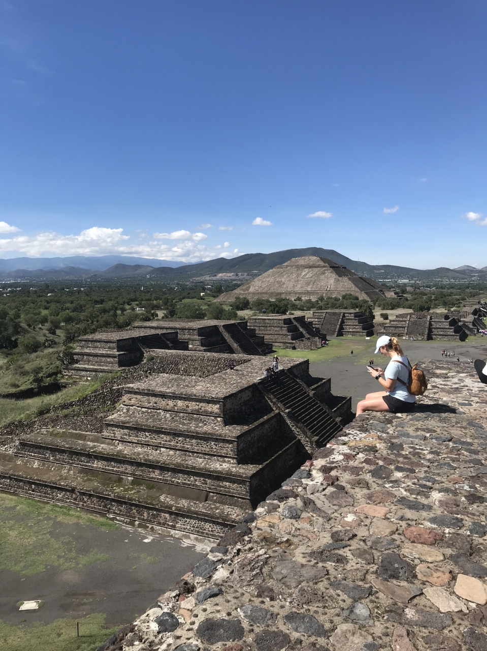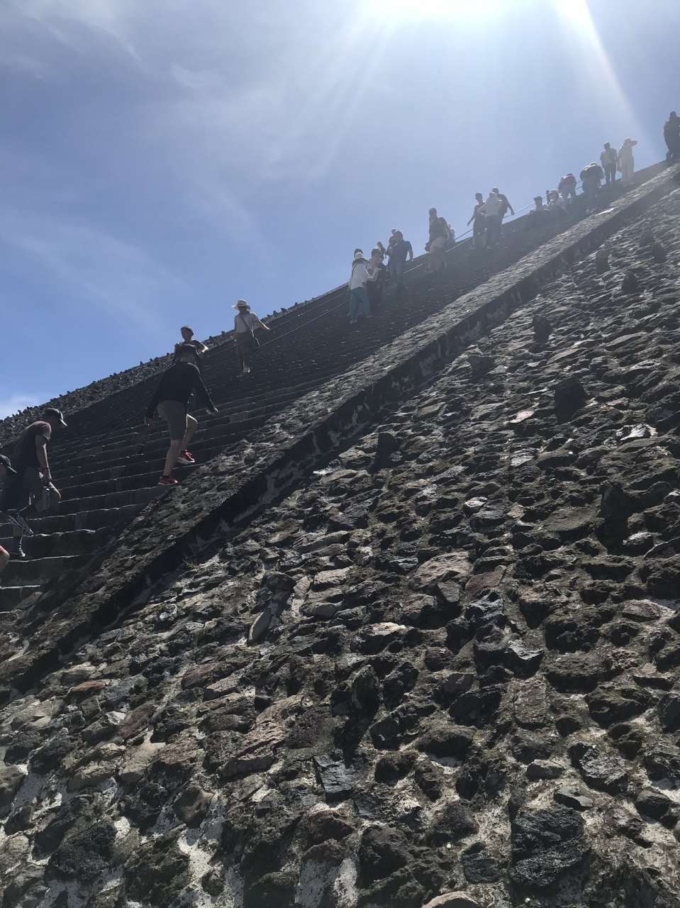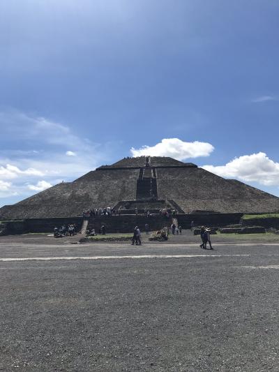 メキシコシティまで行ったらはずせないテオティワカン遺跡の太陽と月のピラミッドです。オプショナルツアーで行きましたが他の参加者もいなかったので貸切でした。天気の悪い日も多いようですがとてもいい天気でした。遠くから見ると傾斜は急には見えないのですが標高が高いせいかピラミッドに登るのも結構息切れしやすいのでご注意ください。