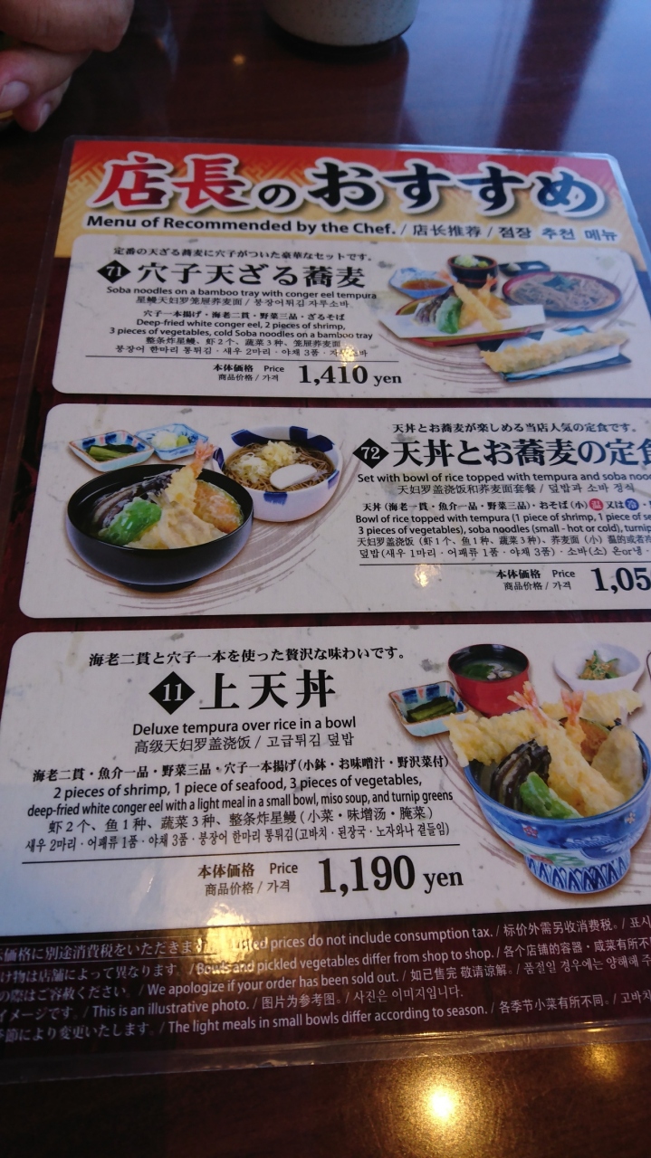 成田空港の第2ターミナルの4階にあり飛行機なども見える場所で、席も広めで天ぷらも職人さんが揚げていて美味しいのですが、天丼や蕎麦も少し薄味でもう少し味が濃くてもいいかなと思いました。数少ないハラール対応の店ということでマレーぽい方もいました。