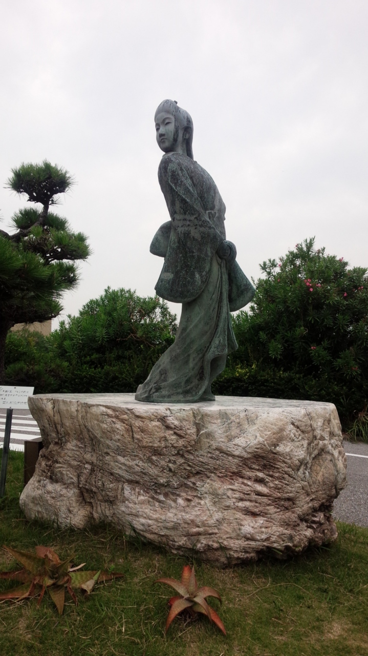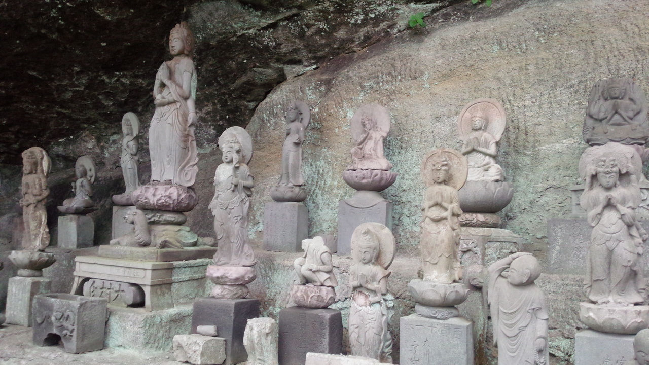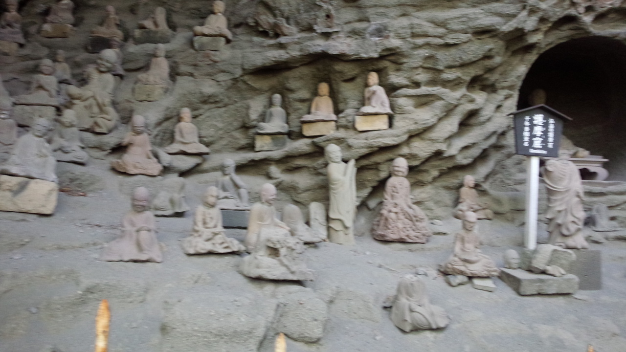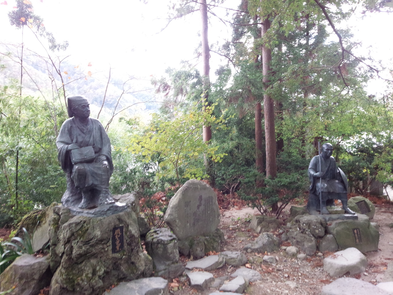 立石寺を「静けさや 岩にしみ入る 蝉の声」の俳句で有名にしている松尾芭蕉とその弟子の曾良の階段を登る前にある銅像です。紅葉の時期は人はいっぱいだったのですが芭蕉の行った時は人も少なく静かだったのでしょうか。銅像はたまに写真を撮る人がいるくらいですいていました。y