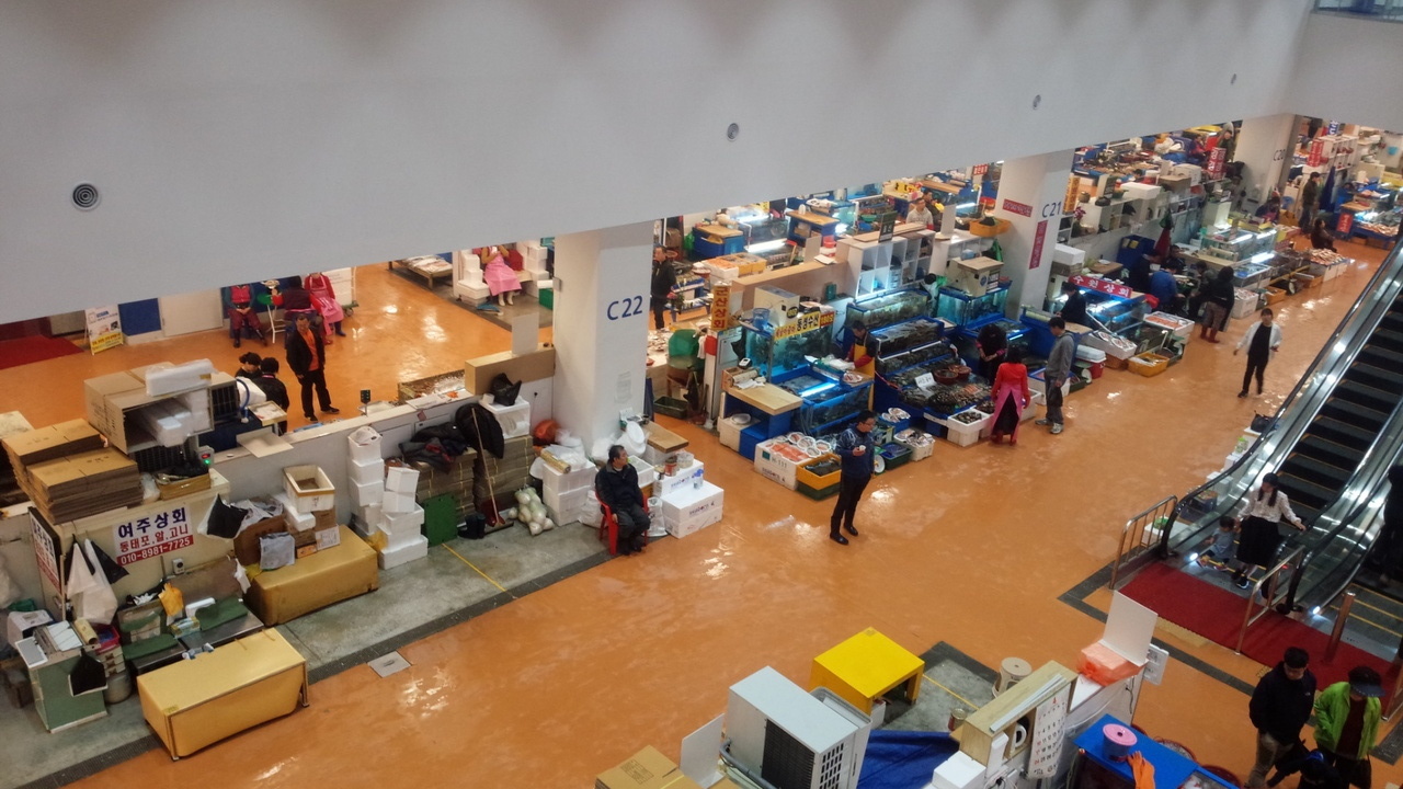 新しい市場はとても綺麗でしたが魚屋さんはほとんど古い方で営業中