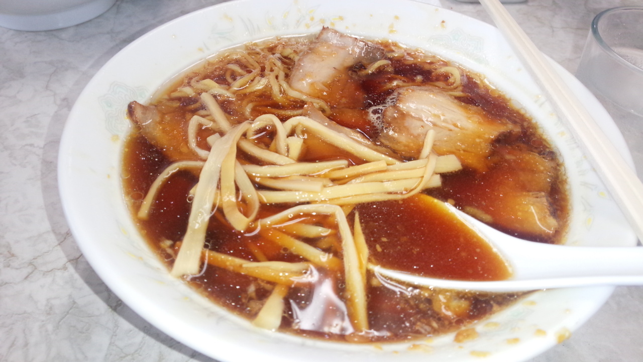 チャーシューワンタン麺を頼んだら上のほうにはあまりチャーシューがあるように見えませんが、チャーシューがゴロゴロはいっていました。メンマではなくシナチクと表現しているシナチクは濃いめのスープに合わせるために薄味でした。- 旅行時期