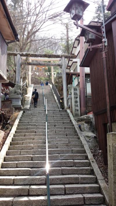伊香保といえば石段のまわりの温泉街のイメージです、射的屋さんが何件もありました。他の温泉街にも射的屋さんもありますが他よりも比率が多い気がします。石段沿いの店ではこんにゃく屋さんが一番人がいる感じでした。3月だったので石段に上に行くにしたがって五人囃子、三人官女、お内裏様とお雛様の顔出しパネルがありました。他にも干支が石にあったり段数が書いてあったり365段を登る途中でも飽きさせない工夫があり、石段の途中からの景色もいいです。でも草津の温泉街とくらべると小規模だと思いました。。