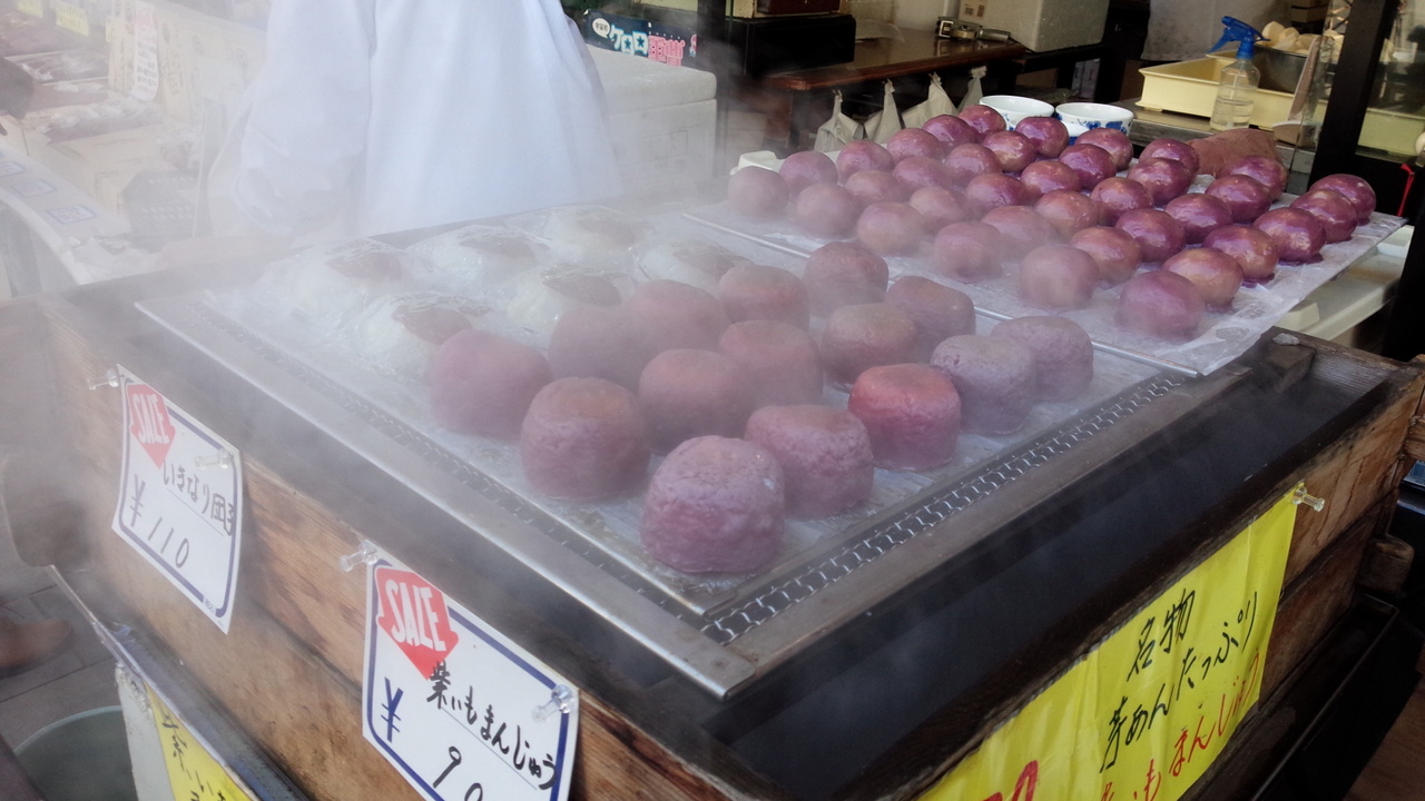 水前寺公園を観光した時に、熊本名物のいきなり団子を食べなければと思いはやしのいきなり団子のお店で食べてみました。呼び込みのおばあちゃんが言っていたとおり熊本城ではいきなり団子200円していました。その場で一人1個づつ食べてましたが110円のいきなり団子でも薄めですが、入れ立てのお茶を出してくれました。せいろで蒸したてだったので物産展などで食べた時より美味しく感じました。
