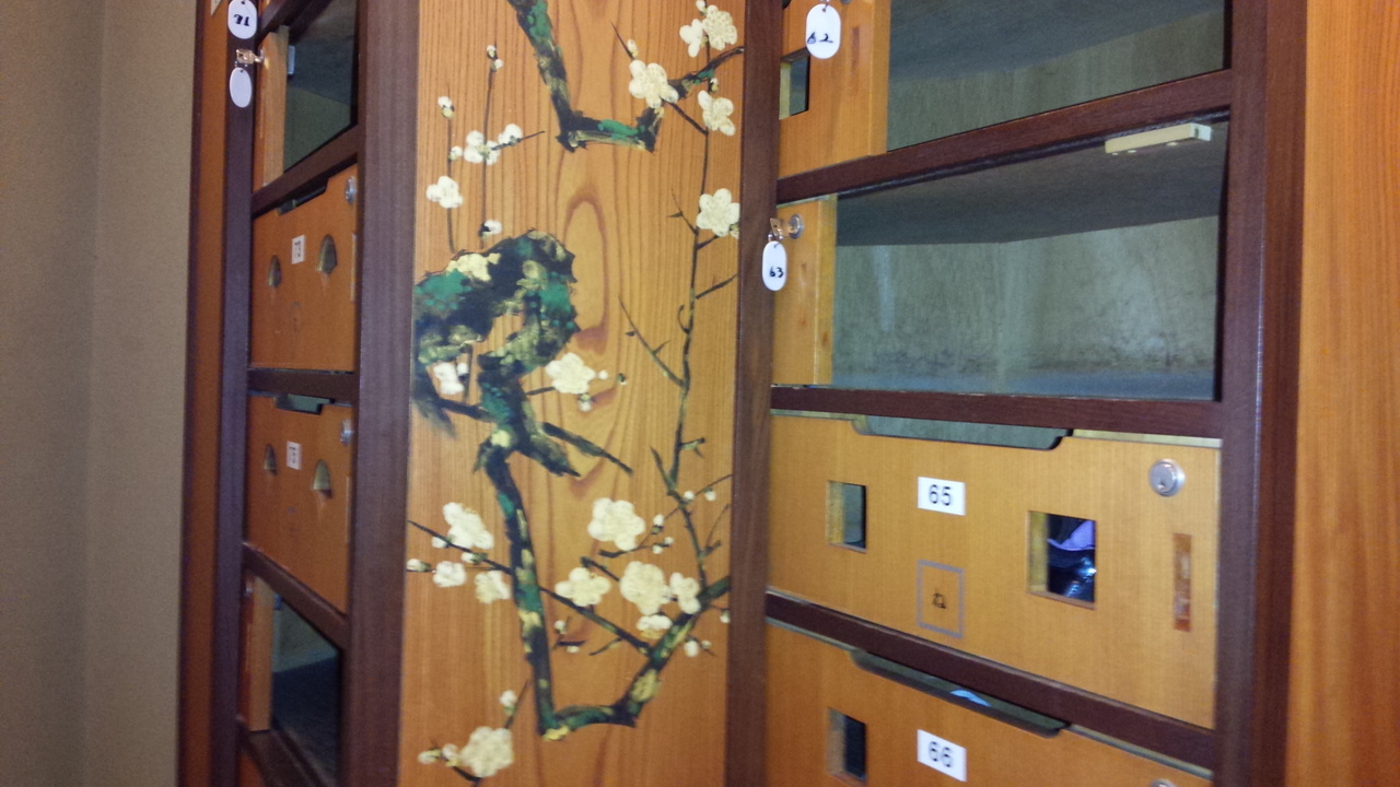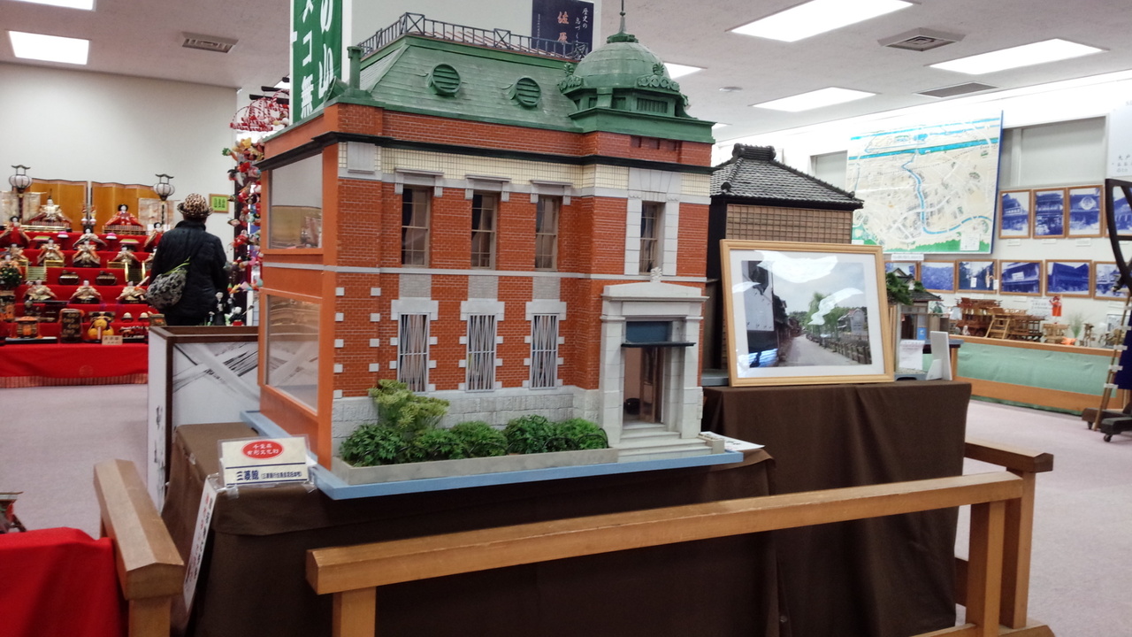 旧三菱銀行の建物の部分は金庫のあとに入る事ができます。ちょうど雛祭りの展示をやっていて吊るし雛やお雛様などが飾ってありました。ビデオを上映していて、伊能忠敬記念館で受けた説明の一部が見れたりしたので復習になりました。