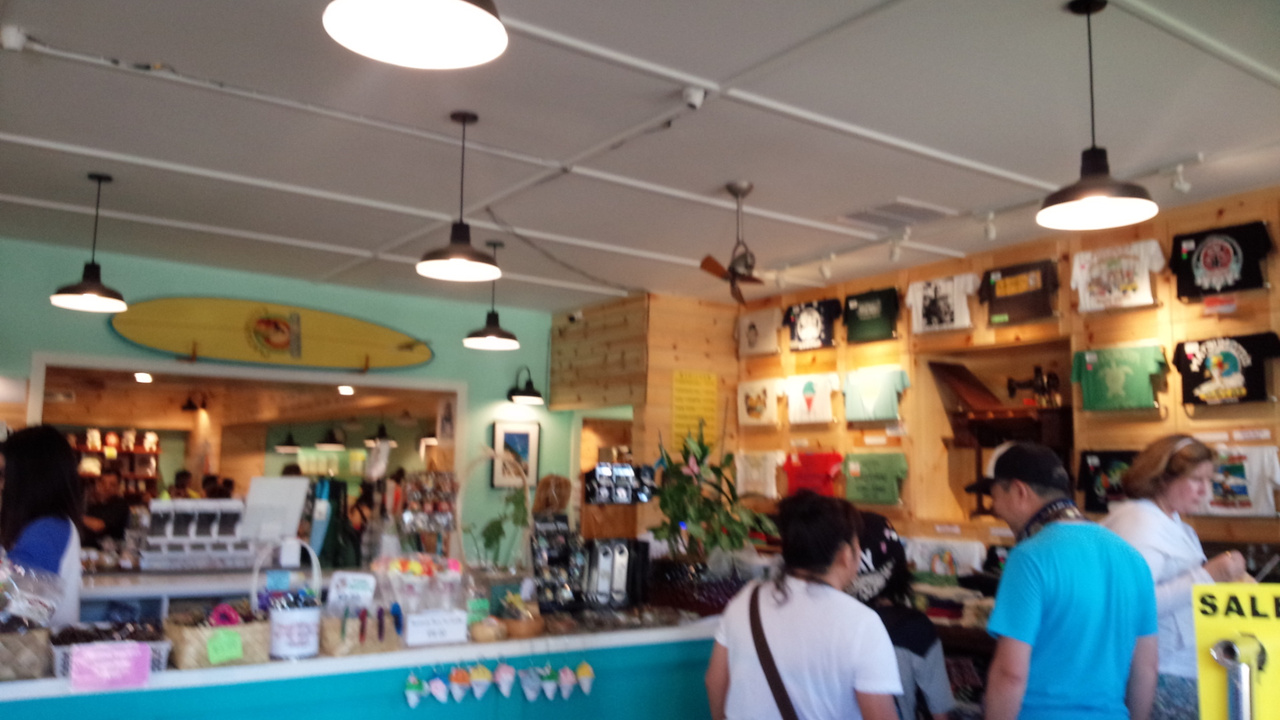 道路沿いの入り口がTシャツなどを売っているグッズ売り場になりシェーブアイスにならぶ店と別れたかんじになっていて前よりごちゃごちゃ感が減った気がします。Haleiwa Store Lots というショッピングセンターの中にありすぐそばにアイランドビンテージコーヒーがあります。