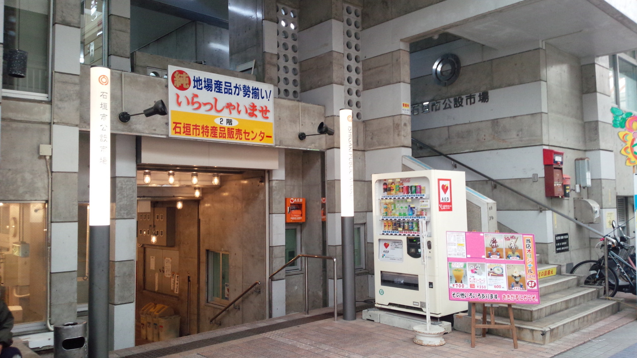 日本最南端の商店街のユーグレナモールの中心部にあります。ユーグレナモールには何度か行っていますがいつも夜なので公設市場には初めて行きましたが、美味しそうな石垣牛を売る店が何軒かあり、昼ご飯に焼肉を食べた後で旅行初日で無ければお土産に買ってしまったかもしれません。でも魚を売る店は1件しか無くあまり南国ぽい魚は売っていませんでした。
