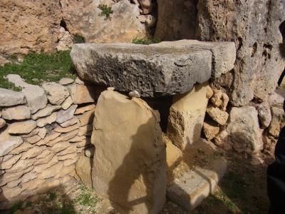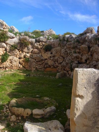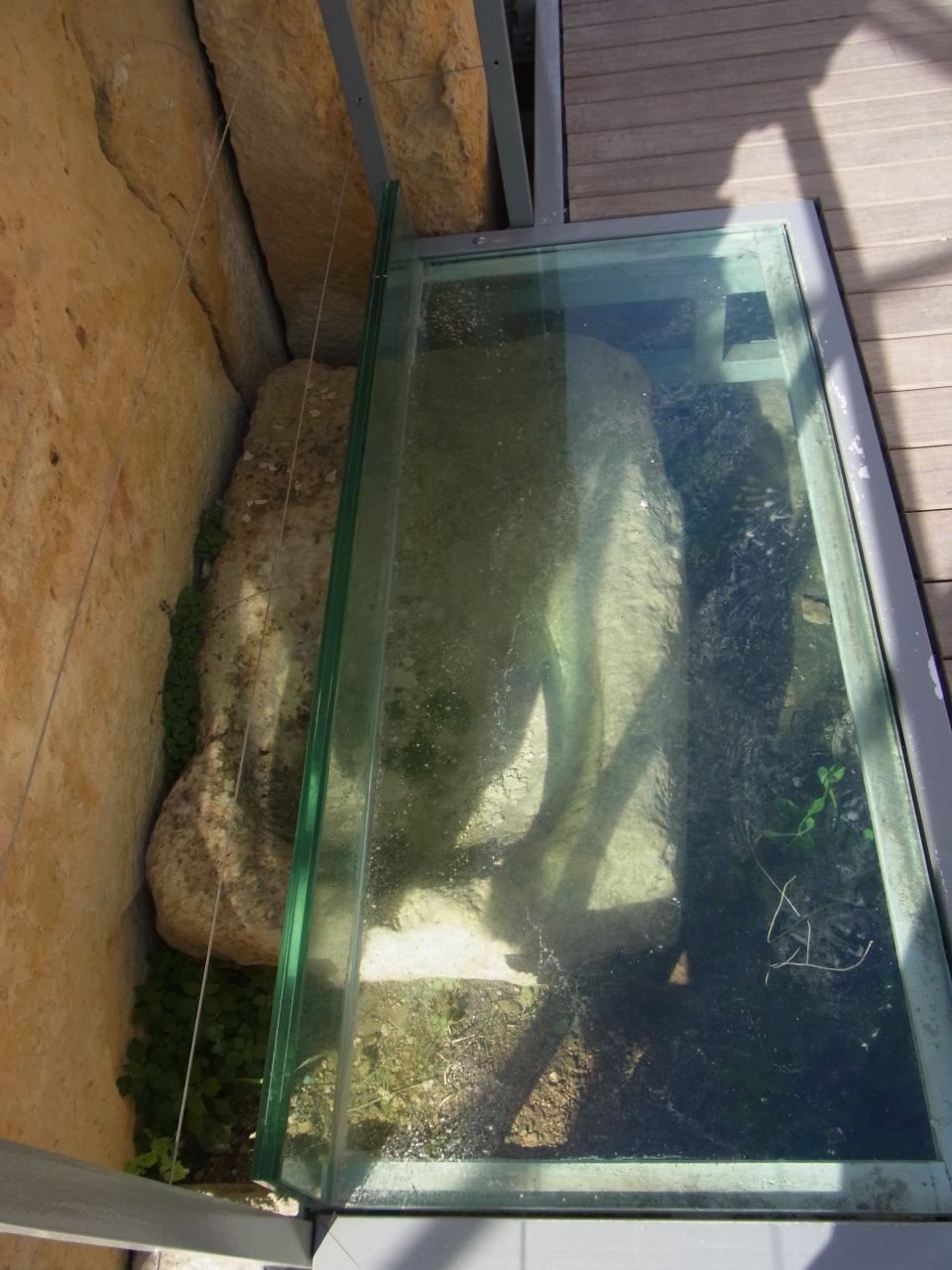 ここで発見されたらせんや蛇をかいた石、巨大な男根像など。