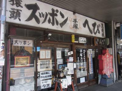 「手塚スッポン店」入り口にも怪しく色々な物が置いてある^^