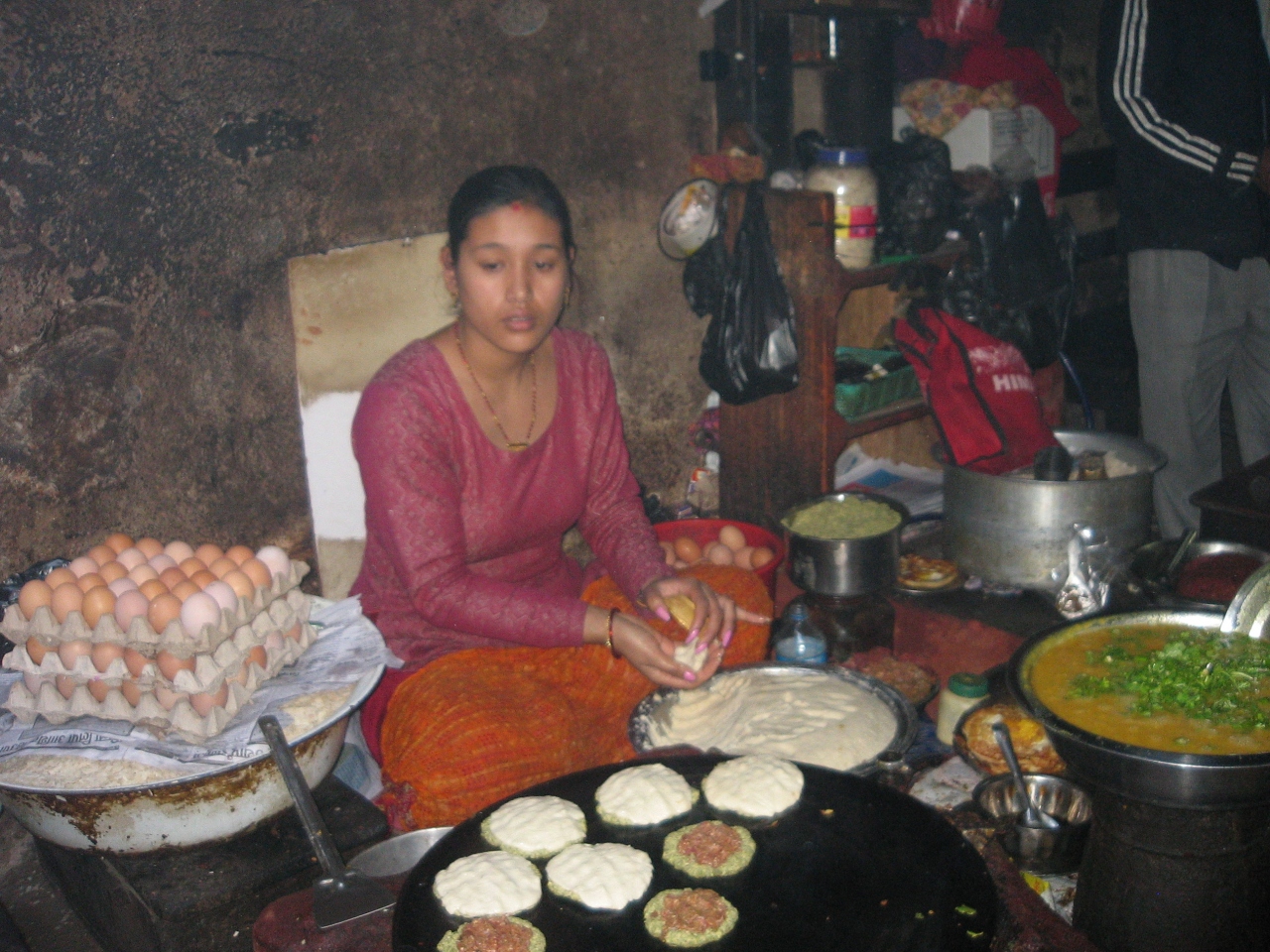 クリシュナ寺院の裏手の民家?の中にウォー(お好み焼き風)が食べれるお店があります。とても分かりにくいけど~地元の子供に聞いたらすぐに案内してくれました。