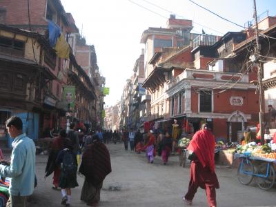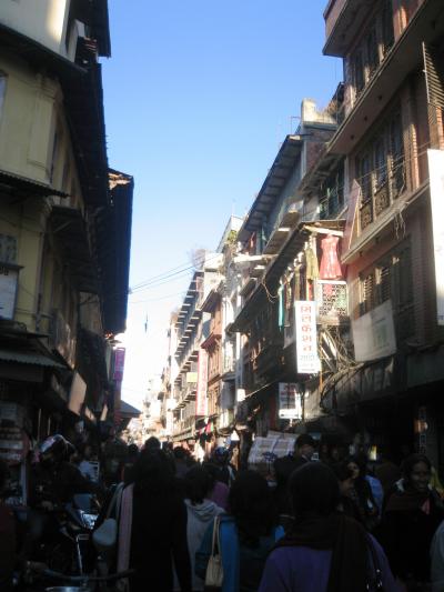 安宿も集まるタメル地区。お店も多いけれど観光客が多い分値段も高めなので~交渉しないと高くつきます。