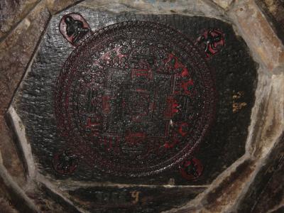 先ず入った門の天井を見てみてください。石の曼荼羅があります。