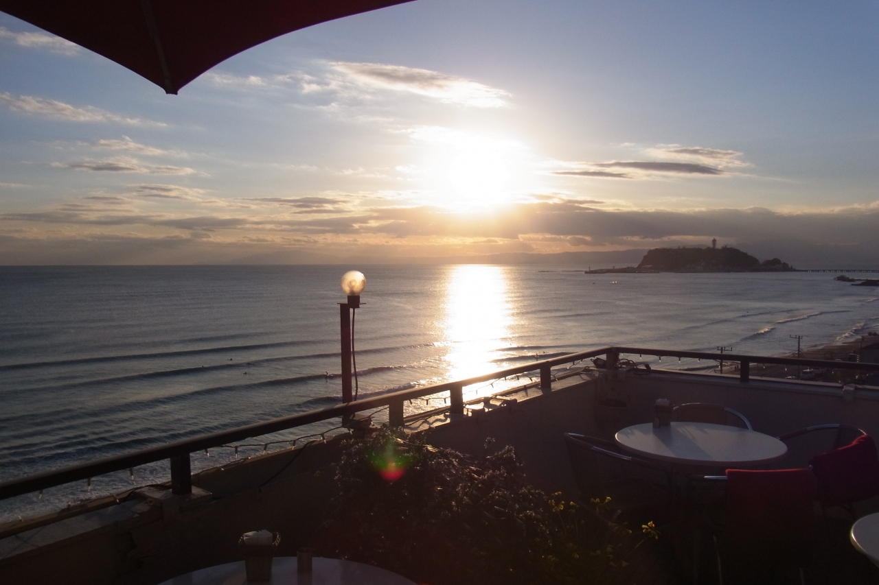 江の島を眺めながら食事がとれる素敵なレストラン。