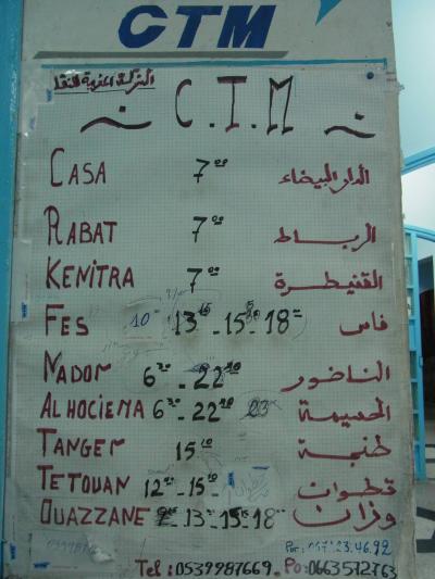 ブルーの町シャウエンは他の町とは一味違う落ち着いていてぜひ訪れて欲しい町です。私はフナからCTMのバスで行きました。(他社のバスも午前発でした。)計画を立てる参考にして下さい~。バスの時刻表です!