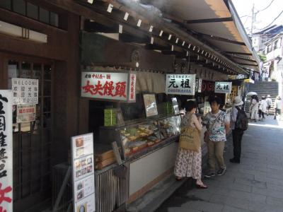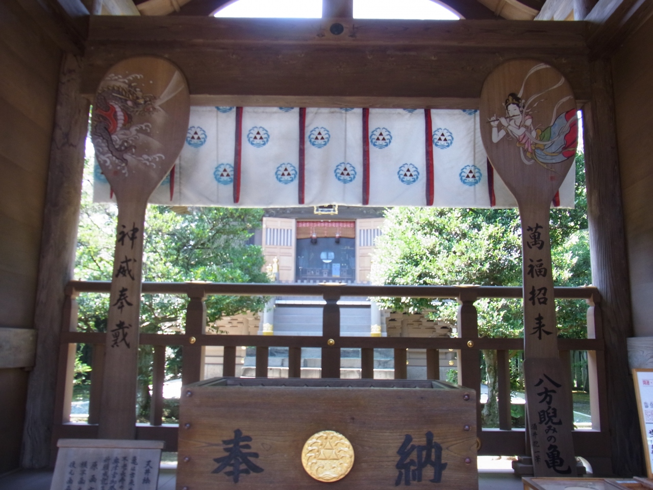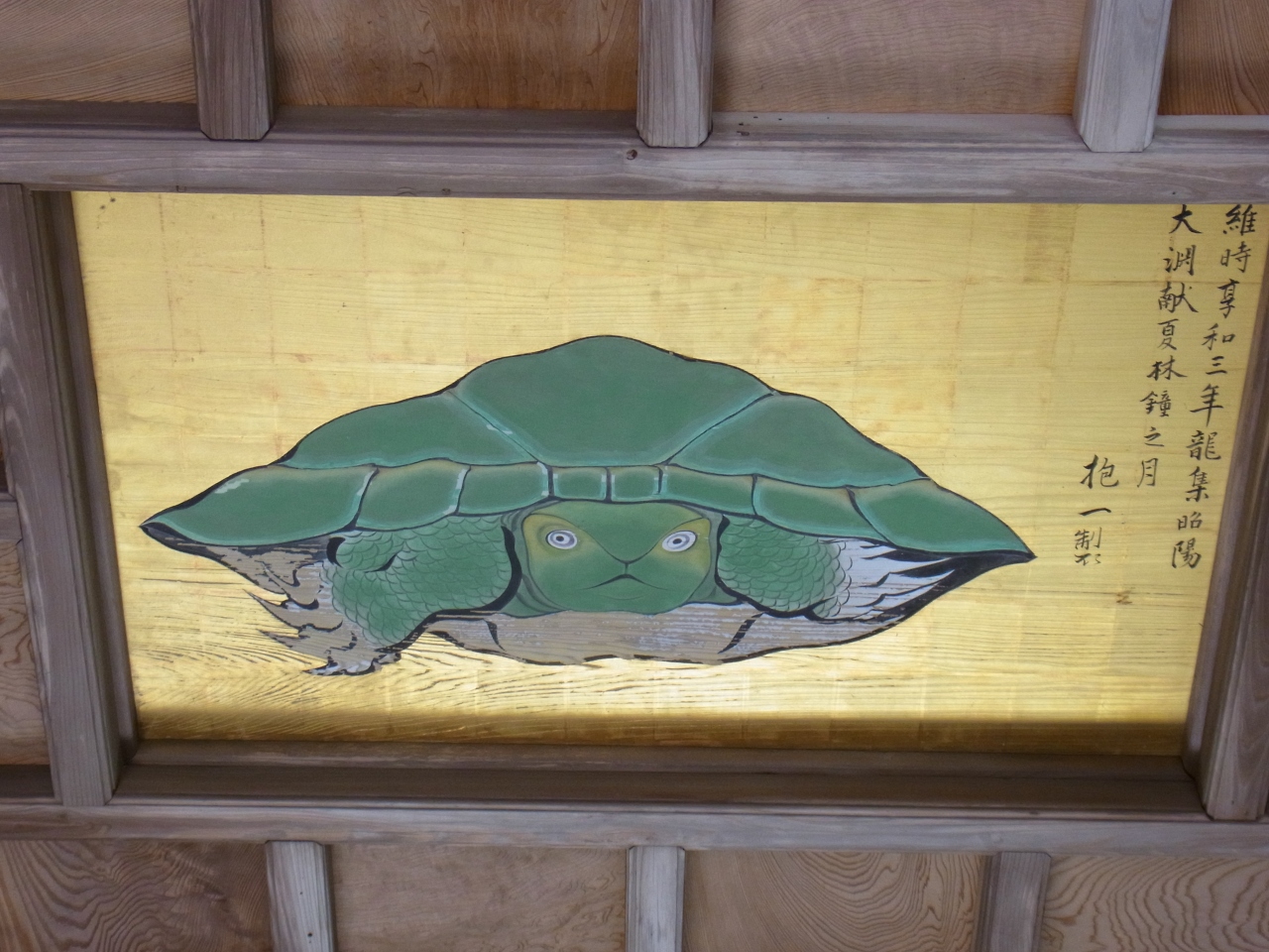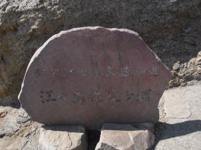 江島神社奥津宮付近です。なにやら祀られているので行ってみると亀石とありました。古い標文に『「鎌倉四名石の一つで、またの名を「蔵六石」という。』とあります。亀の甲羅の模様が見てとれるような~とれないような。