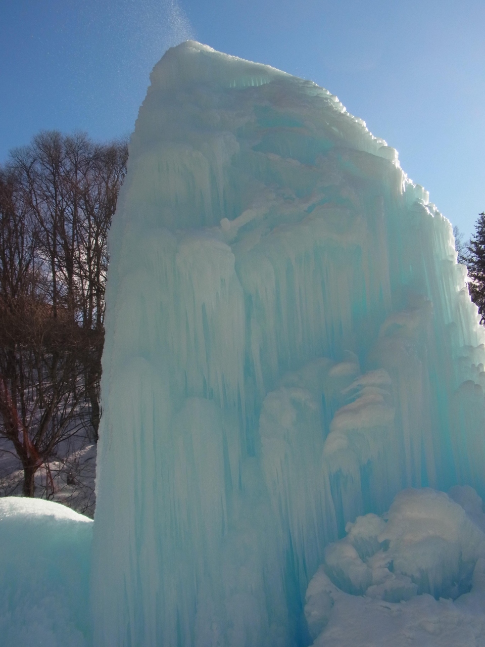 飲用可能な程きれいな、不純物の少ない湧水を凍らせているので一層青さが際だつんだそうです。- 旅行時期