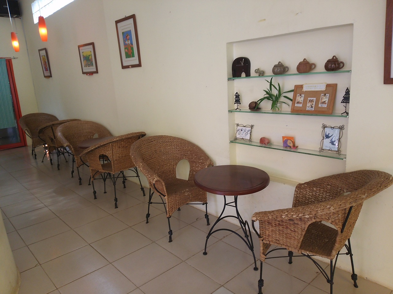 何か飲もうということで、トゥクトゥク使って行きました。店員さんは日本にいるかのような丁寧なマニュアル応対。自分の不機嫌な感情をぶつけたり一切しません。値段も思っていたほど高くありません。テラスもありますが、店内のほうが涼しいし、ディフューザーからいい香りのアロマが流れて気持ちいいです。
