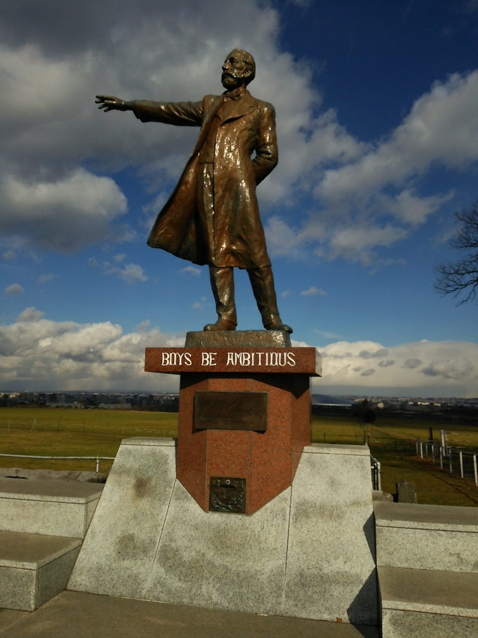 実は今まで行ったことが無かった羊ケ丘展望台。今回の旅行、季節外れに積雪が多い北海道です。どんより寒空をバックにクラークの写真はいやだな~って思ってたらこの時間見事に晴れました。ちぎれた雲と青空、運がいい!展望も良い場所です。