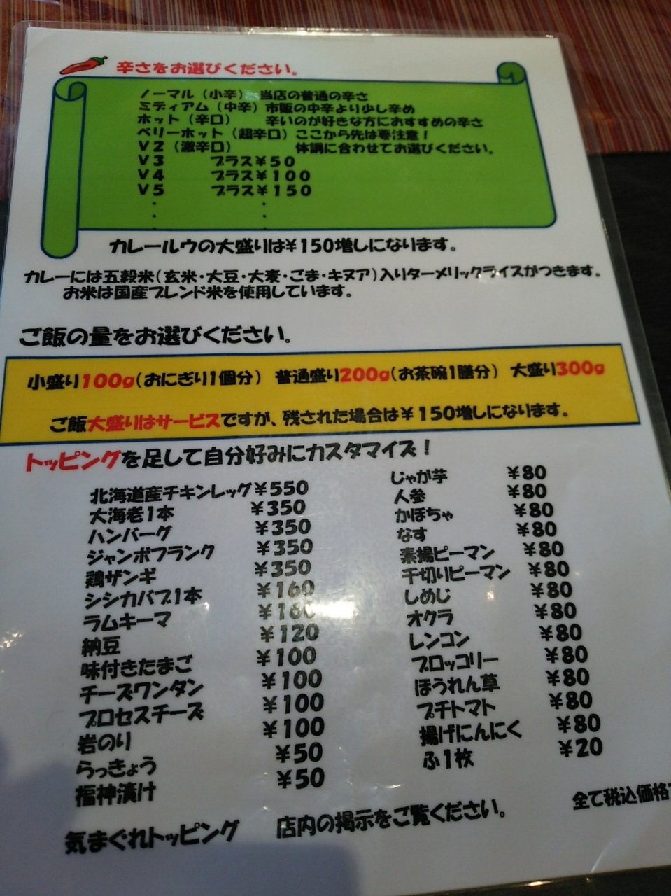 羊ケ丘から近くて、おいしそうなカレーはどこかと探してたどり着きました。スープカレー慣れしていない私たちには、判断基準が人気かどうか、値段はどうかぐらいしかないですが。同行家族はルゥありの店がいいとかわがまま言うしね。