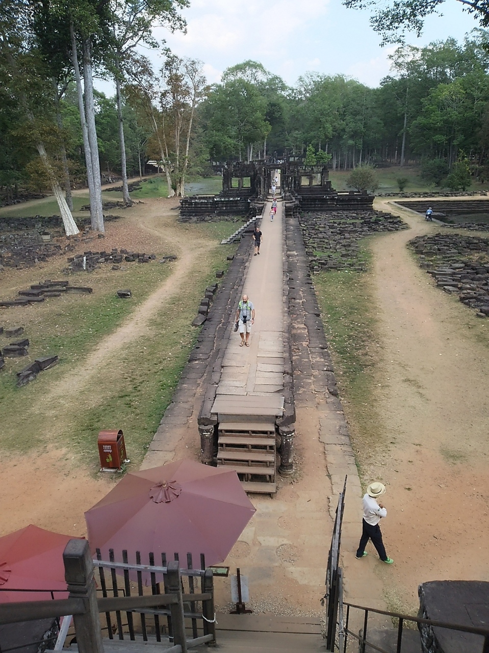 アンコールトムを離れて別の遺跡へ。その際に勝利の門を通って出ていきました。ここって戦いに勝って入ってくるとこなんですけどね。ショートサイクルで観光するときはこうなってしまうんですね。じっくり見ないと南大門との違いがわからない。
