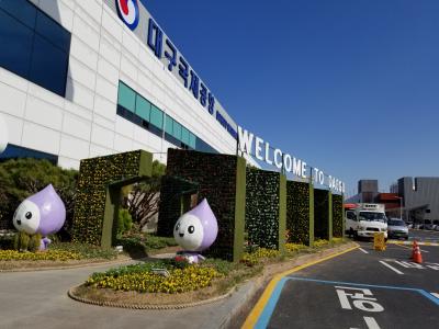 市内からバスで30分かからず到着できる便利な空港です。空港ロータリーではなくて、正面大通りのバス停からが本数頻発です。ただし、ローカルバスなので混んでいます。荷物が多い人はタクシーが良いでしょう。空港内はコンパクトで疲れない動線ですが、入出国ともLCCなどで便が重なっていると、かなり並びますので注意。