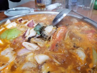 釜山に日帰り観光。目的地はここ。ヘムルタンを食べに来ました。ここのヘムルタンが良いのは中身がほぼ海の幸で余計なものは入ってないところ。安くはないのでコスパがいいとは言えませんが、他のお店で食べるより外れません。人気店で日本人客も多いです。行ったときは半分日本人。混むのはいやなので、14時くらいに訪れて、ゆったりと食事しました。