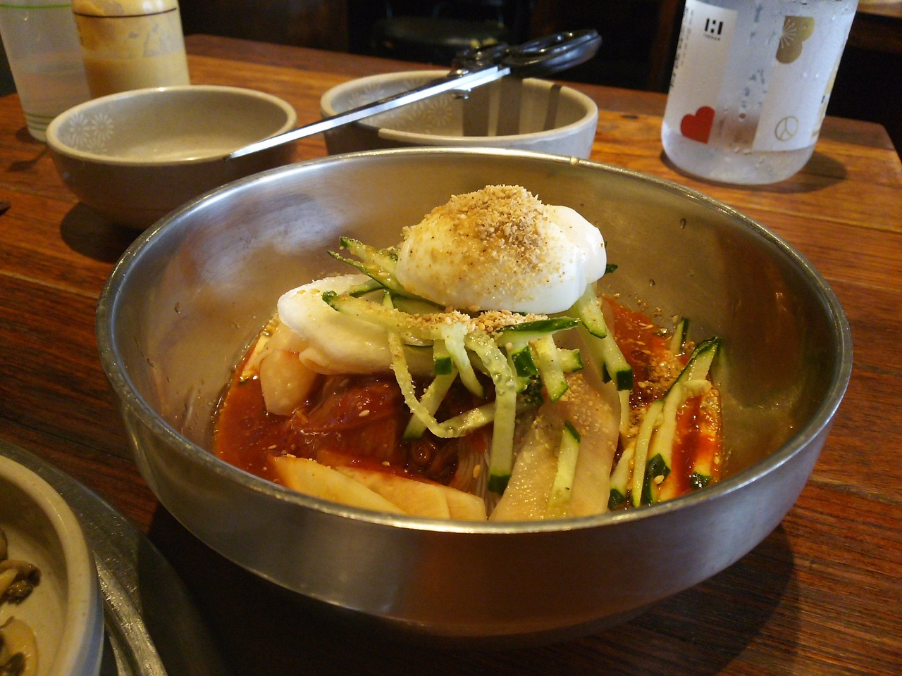 暑い夏に鍋物は厳しい気がしますが、店内はエアコンとオープンエアで湿度を抜く工夫をしています。それでもちょっと蒸し暑いですが、ニンニクが効いたタッカンマリは美味しい!量は普段たくさん食べる人には足りない感じ。ネギとジャガイモは増量でオーダーがお勧めです。