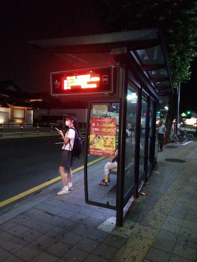 夜の水原華城から帰るとき、長安門南側にあるバス停を利用して水原駅に戻ったのですが、華城って大きく右か左に回れば駅に行けそうな雰囲気なんですよ。で、北側にもバス停があったことを思いだし、左回りだっ!て賭けました。来ましたよ。バス。ただ、なかなか来なかったから右周りもあったかもです。