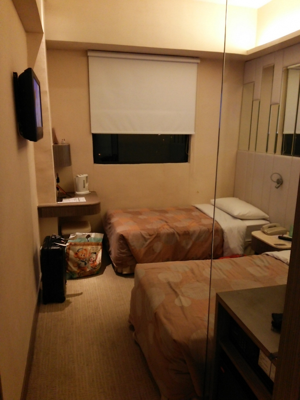 ツアーについてたホテルです。少ない敷地にめいっぱい建っているホテルです。香港のホテルはだいたい狭いから狭さについては気になりません。場所も便利だし。ロビーにいつもいるコンシェルジュのおじさんが、さりげなく親切で大好きです。愛想はないけど無愛想でもない雰囲気が。