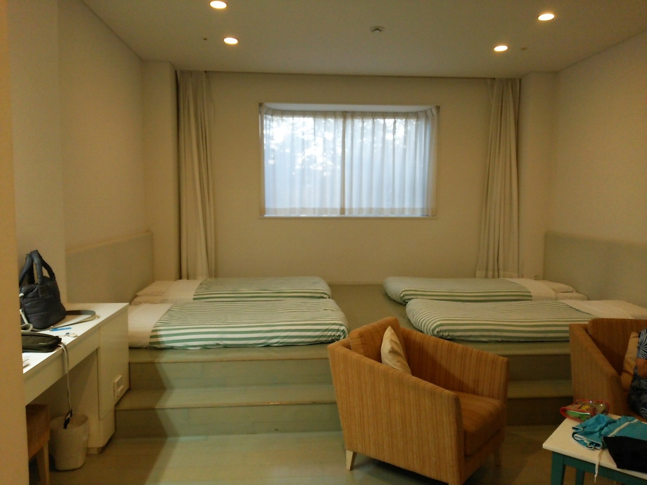 部屋はだだっ広くて、一段高くなった場所に布団。なんか馴れません。