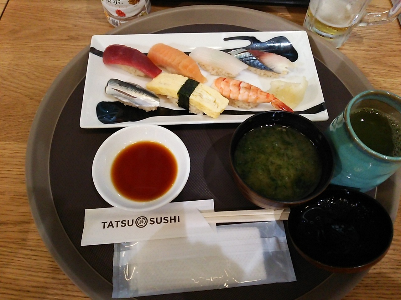 成田からLCCを使うとき、3タミのフードコートは欠かせません。そして、結構な頻度でTATSU-SUSHIを利用します。でも朝ごはんで使うのは初めて。生ビールも頂いちゃいます。3タミ開業時から使っていますが、いつもこのお寿司屋さんは空いてて平気かな~なんて思ってました。今回は朝にもかかわらずカウンター満席で、ちょっぴりほっとしました。さっとつまんで一杯、お手頃です。