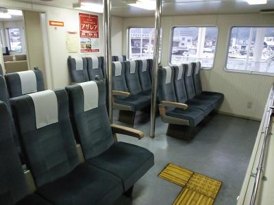錦江湾を横断するフェリーの1つ。今回の乗船では車3台と4グループ数名だけの寂しい船内。
