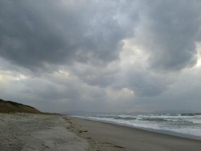 ここの砂丘も負けてません。浜に砂丘を作った強風が渦巻いて、目が開けられない!人なんて全くいません。