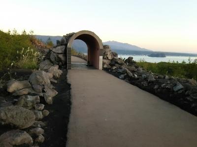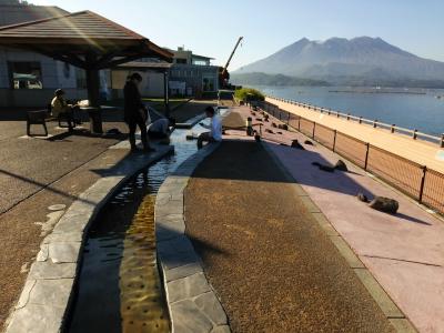 桜島を目の前に見ることができる道の駅。ここは日本最大級の足湯があるんです!長さ60メートル。早速入りました。長いから上流のほうが温泉が新鮮だと思っていたのに、ここはちゃんと等間隔で湧かさせていました。