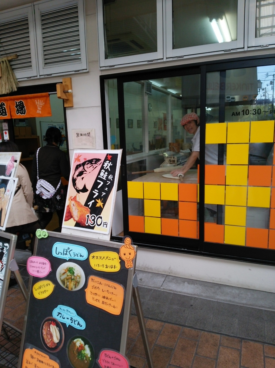 支店が東京有楽町にもあるそう。入口横でうどん打ってます。