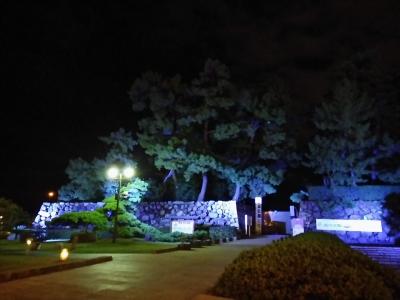 夕方高松に到着したのですが、時期的に辺りは夕暮れも終わりの雰囲気。高松城跡、玉藻公園はいい感じに真っ暗になっていました。