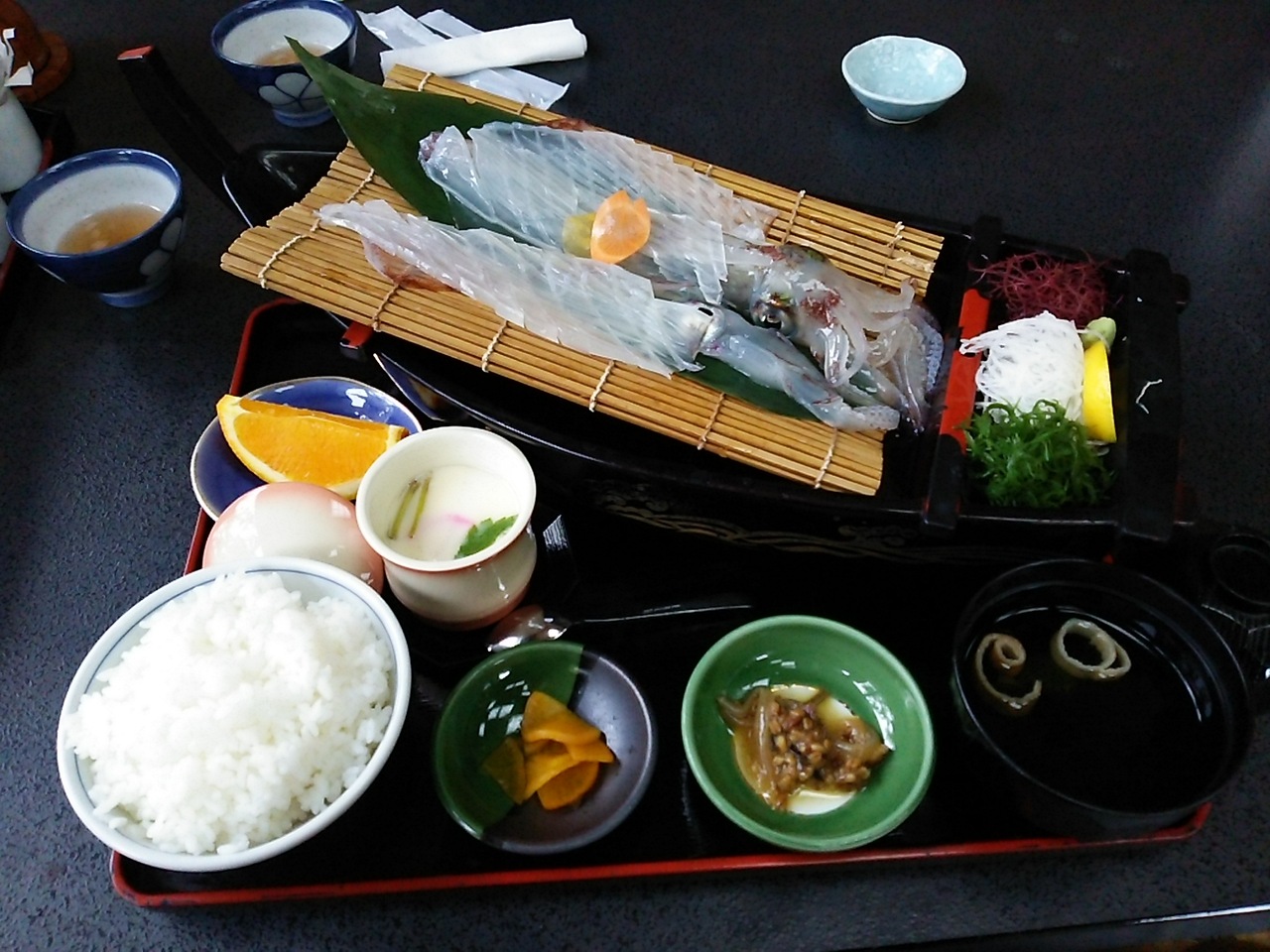 活きイカは名物だけに有名店が数多くあります。なので全体のクオリティはどこでも高いだろうと、立ち寄った道の駅の食事処「桃山亭海舟」でいただきます。