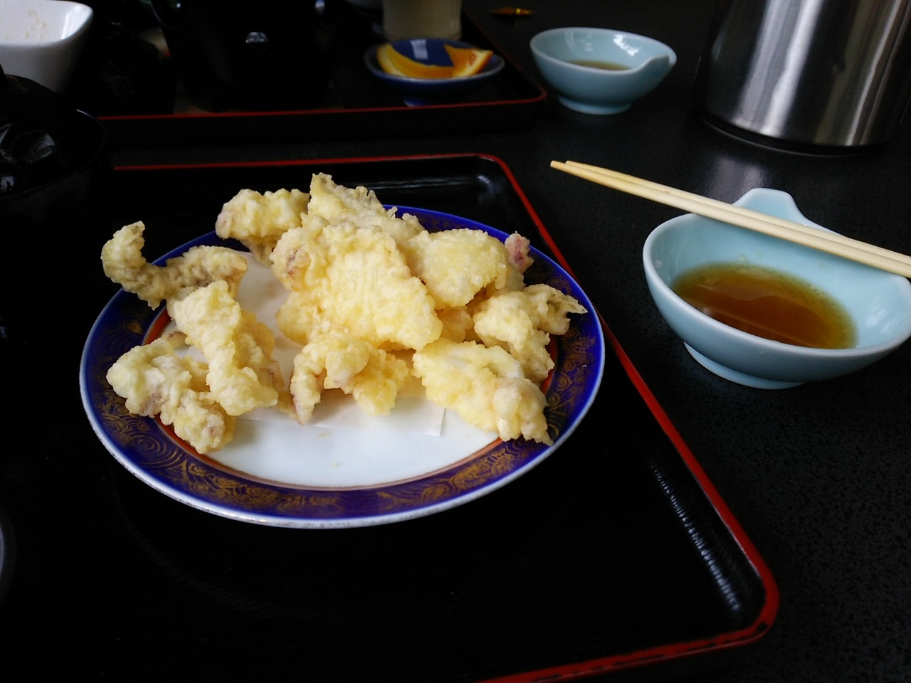 最後に刺身で出てきたゲソとヒレを天ぷらで。これは塩焼きも可能。天ぷらも旨いけどもう満腹でした。- 旅行時期