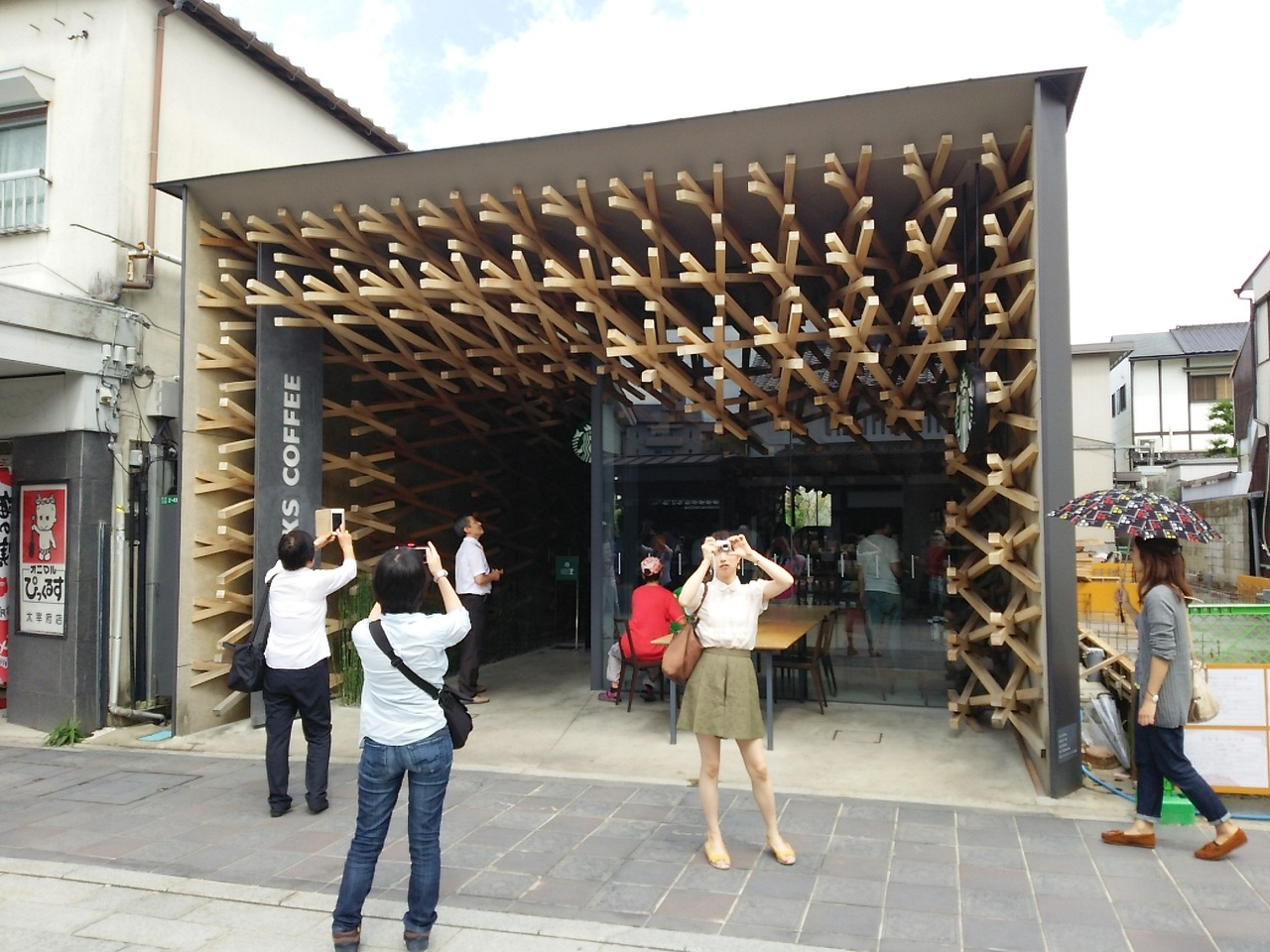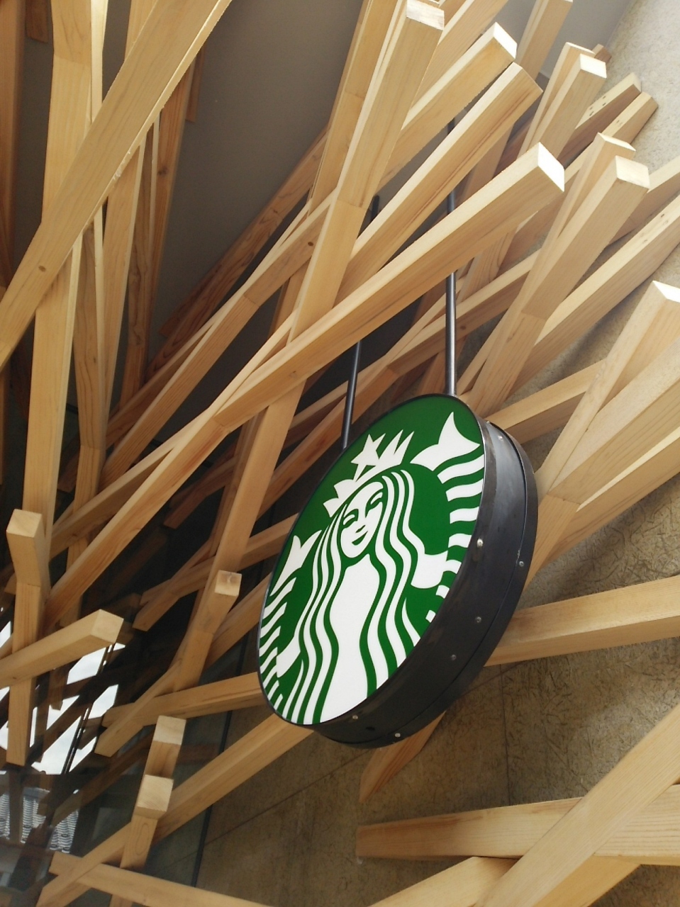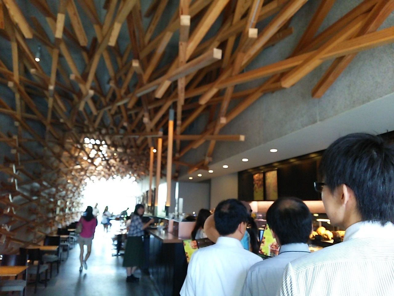 他には無いようなスタバがあると聞いて、行ってみました。なんというか、今までこんなスタバ見たことありません。宮大工が造ったの?斬新な木造ハイブリッド建築でした。