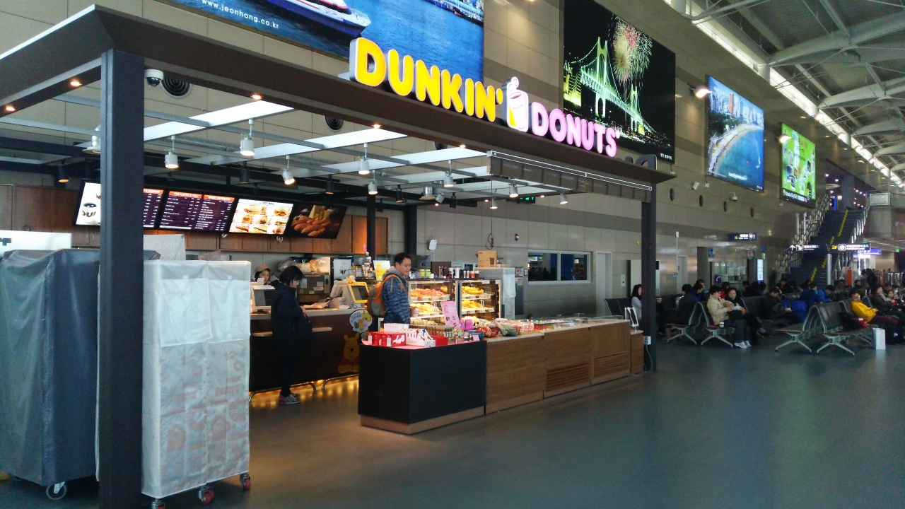 釜山到着時、感じませんでしたが、帰国時に改めて小さな国際空港だな~と感じました。チェックインを済ませて、検査の前にちょい飲みタイムをつくるのですが、フードが・・・いいんですけど。朝食が韓定食だったから、それ系に興味が出ず。では中はどうだと検査後に期待するも、何もなく・・。コンビニはあるけどね。ドーナツ屋さんでドッグ、サンドに缶ビールでベンチにて酔っ払いました。初めてだ。