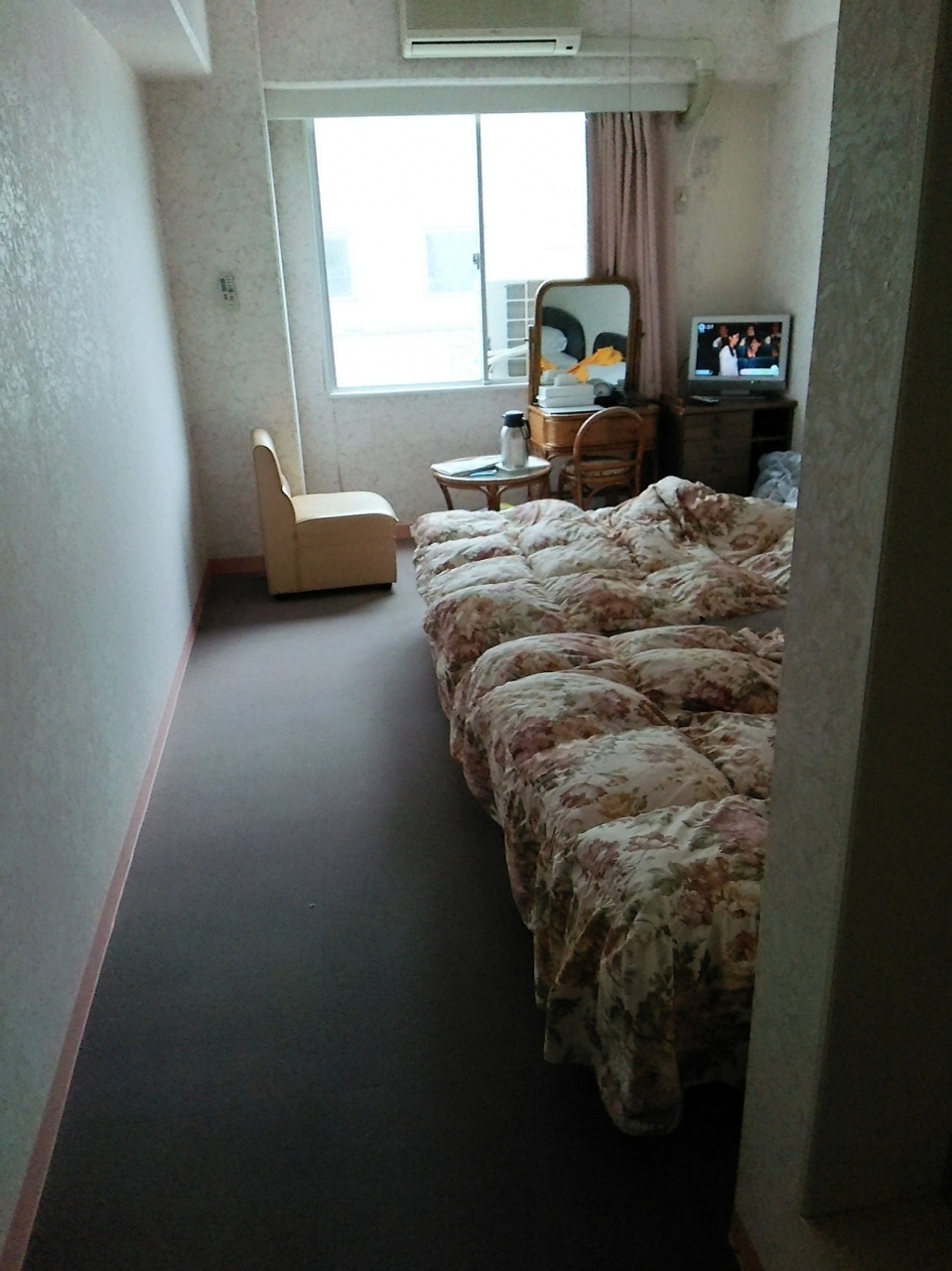 さて、今回失敗したなと思ったのは冷蔵庫がないことに気がつかなかったこと!買ってきたビール、冷やせない…今風のホテルに慣れてしまい、古さが気になります。