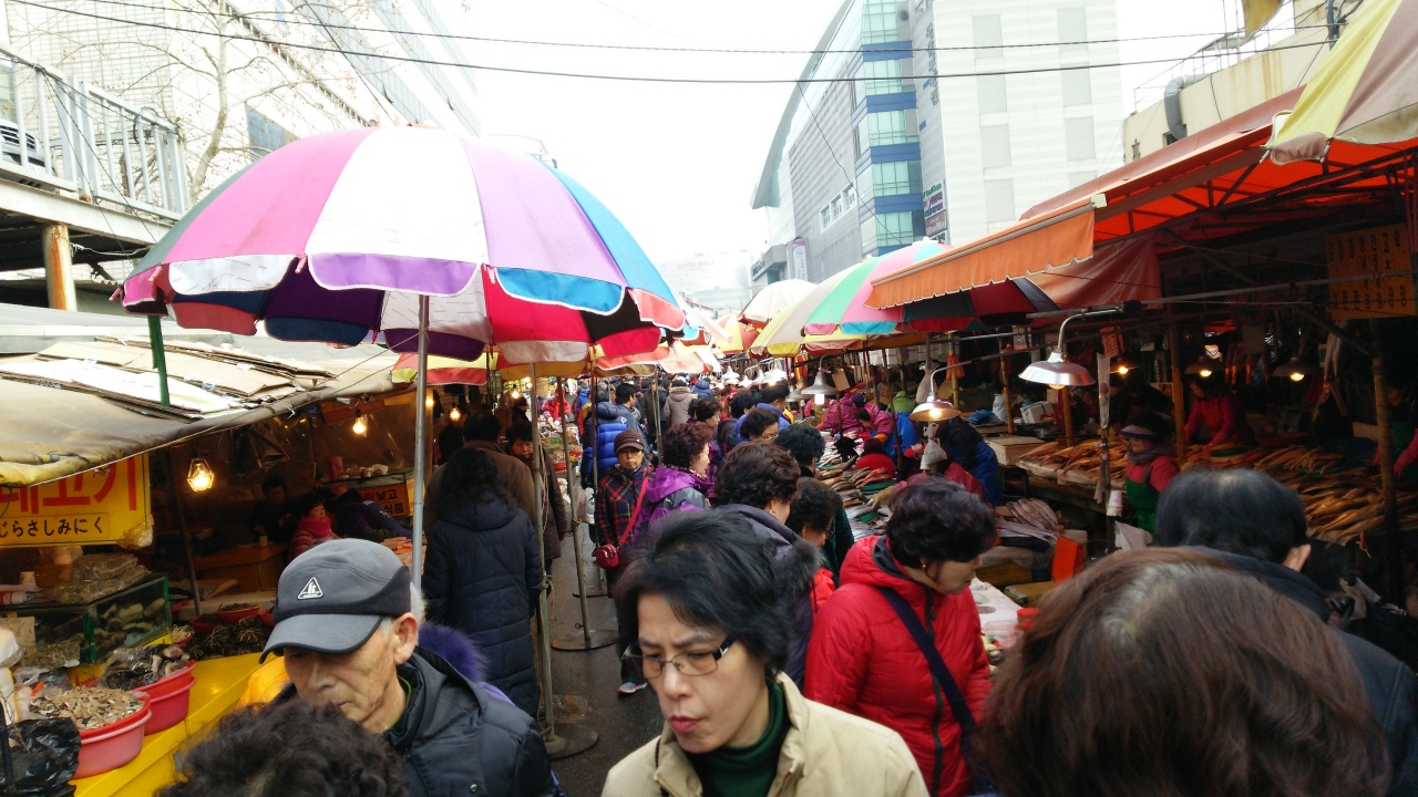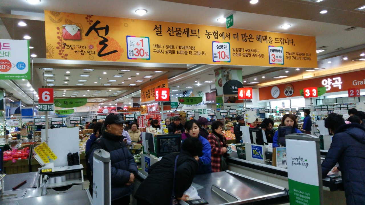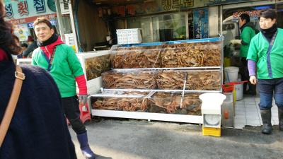 チャガルチ市場に向かう途中、通り道であるとわかっていたので寄ることに・・・中は天井が高く、開放的。手前に量り売りのキムチとかが置いてあり、レジ横からお米売り場、野菜売り場、海鮮売り場と続きます。海鮮・・・買ってそのまま持ち込めるのならいっぱい買ってみたいんだけどな!値段はEマートとどっこいくらいです。
