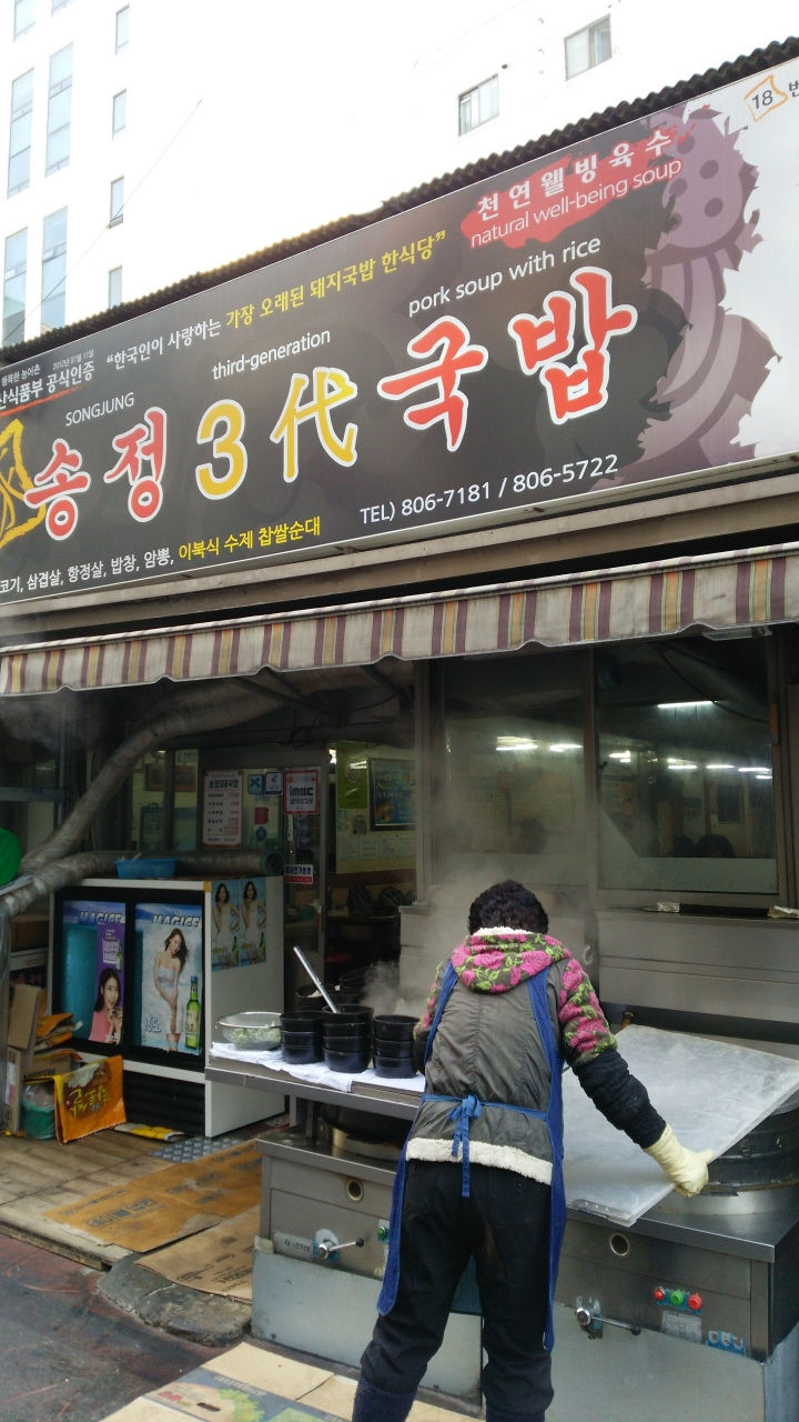で、超有名店松亭3代クッパ。当初店構えが写真で見たのと変わってて、通りを突き抜けてしまった・・韓国って多いですね、急な模様替え的なやつ。