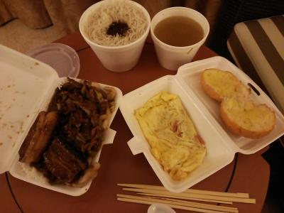 ホテルでふたを開けたらビーフンは汁付きで卵焼き付き。汁なしのつもりが。注文って難しい。ビーフンは相方に好評で、やさしい味でした。弁当の肉もまあまあです。腸詰は、少し煮込み過ぎで甘辛すぎ。焼いただけのやつがいいですね。まあ惣菜選んだの自分ですけど(笑)- 旅行時期