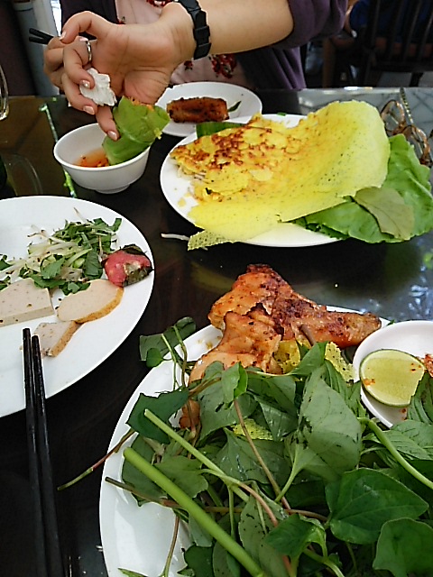 食べたのは、バインセオ、蒸し春巻き、鶏の焼いたやつなど。味は普通です。